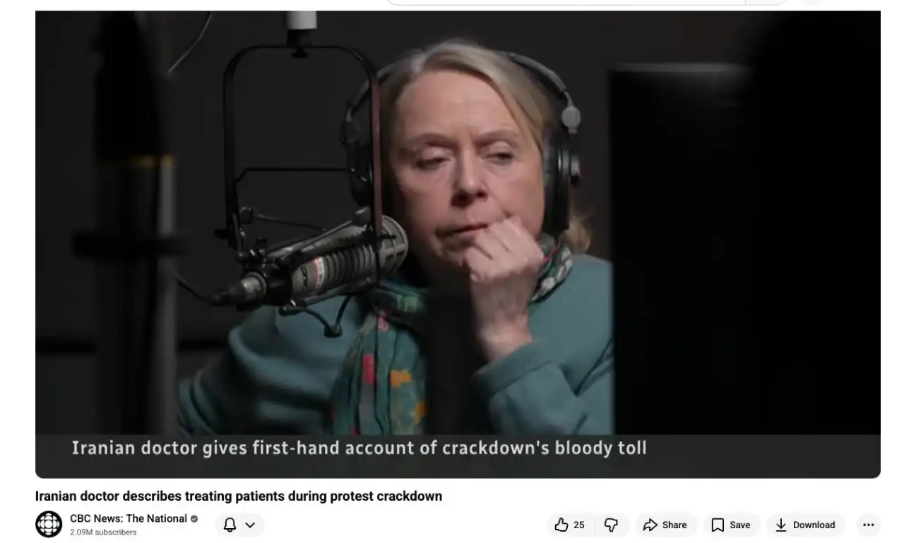 در این ویدیو، یک پزشک ایرانی که بهتازگی ایران را ترک کرده، در گفتوگو با CBC News با جزئیات کامل از تجربه خود در درمان مجروحان اعتراضات سراسری ایران میگوید؛ روایتهایی تکاندهنده از شبهایی که همزمان با قطع سراسری اینترنت، خشونت نیروهای امنیتی به شکلی بیسابقه شدت گرفت و آنچه رخ داد، عملا از چشم جهان پنهان ماند.